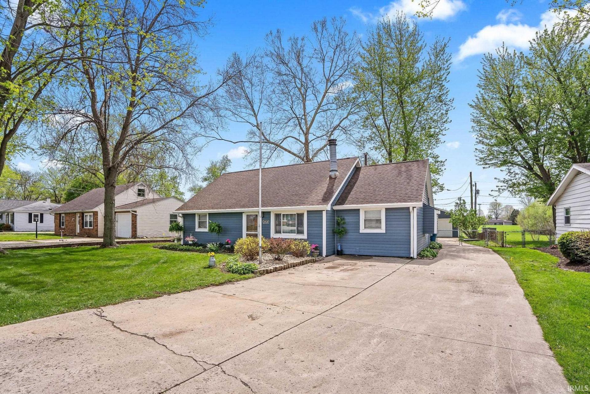 Welcome home to this charming and well-maintained property in the heart of Leo! Nestled on a spacious lot with mature trees, this home offers the perfect blend of comfort, character, and functionality. Step inside to find warm, inviting living spaces featuring beautiful laminate floors, abundant natural light, and a cozy brick fireplace that serves as the focal point of the main living area. The updated kitchen boasts ample cabinetry, modern appliances, stylish backsplash, and convenient bar seating?perfect for everyday living and entertaining. The home offers multiple living areas, including a bright and airy family room with vaulted ceilings and wood accents, creating a relaxing retreat with views of the backyard. The dining area provides a welcoming space for gatherings, while the loft-style upper area adds unique charm and flexibility. Bedrooms are comfortable and well-sized, including a cozy upper-level room with character-filled sloped ceilings. Additional features include a dedicated laundry/utility area and storage throughout. Outside, enjoy a large driveway, detached garage/workshop, and a fantastic outdoor entertaining space complete with a custom bar area?ideal for summer get-togethers. The yard is shaded by mature trees, offering both privacy and a peaceful setting. Conveniently located near schools, parks, and local amenities, this home is a must-see!